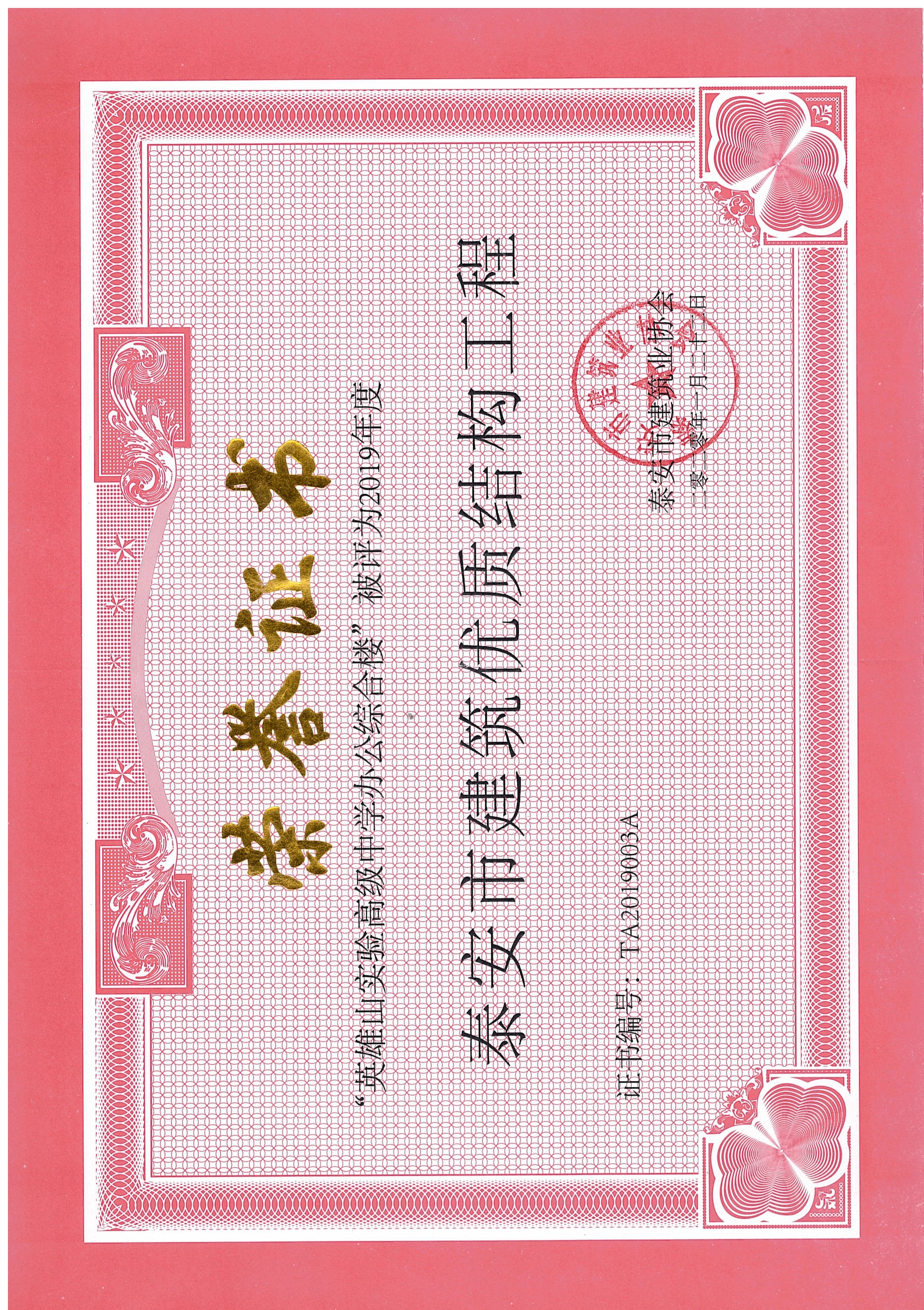 2019年度泰安市建筑优质结构工程