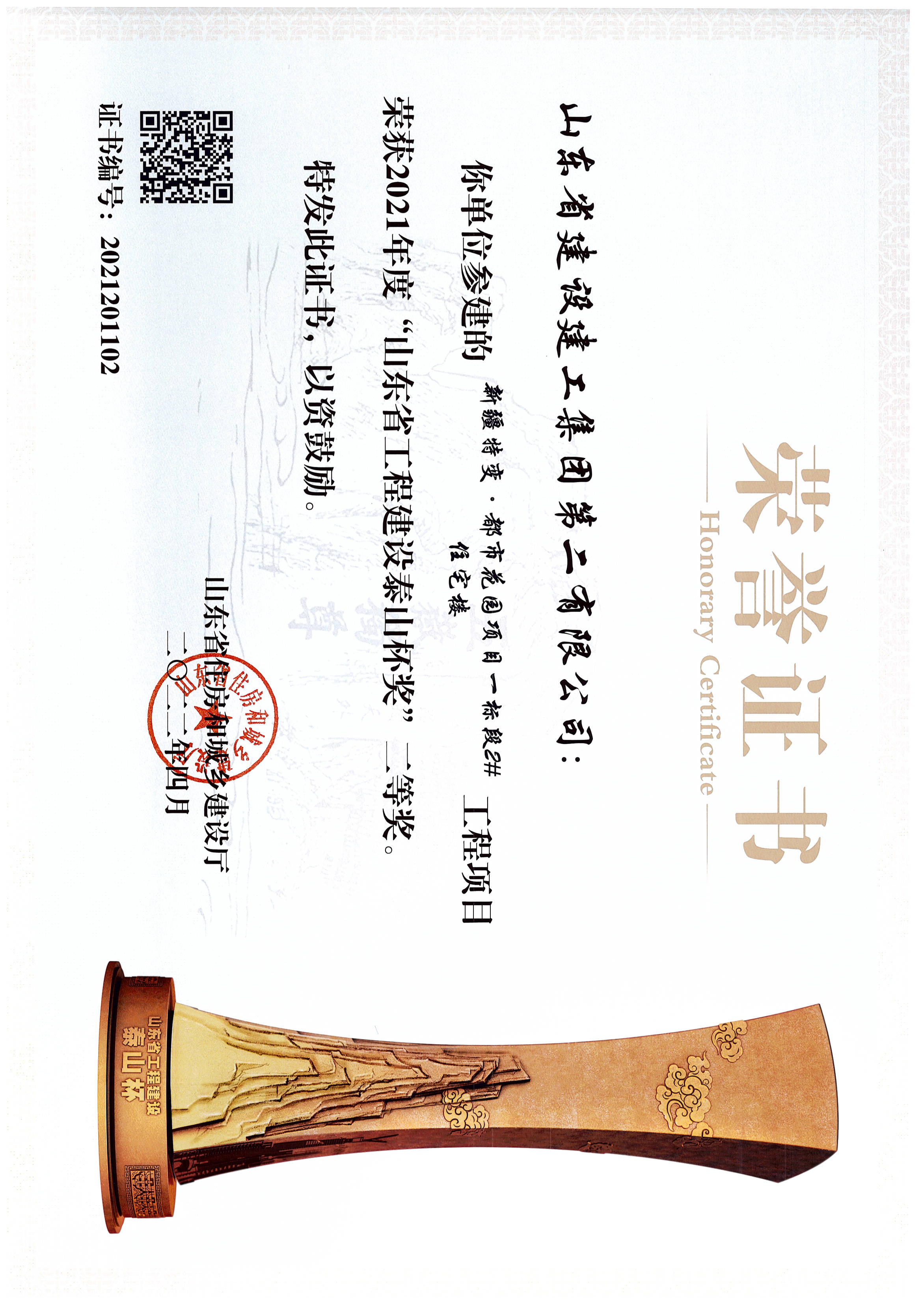 2021年度“山东省工程建设泰山杯奖”二等奖