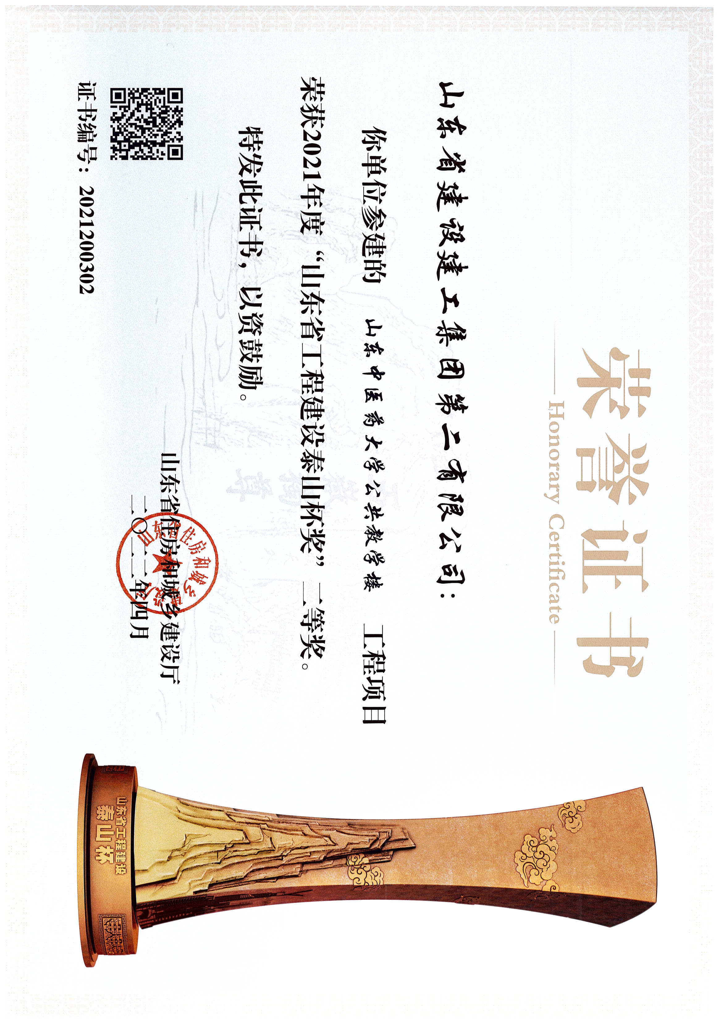 2021年度“山东省工程建设泰山杯奖”二等奖