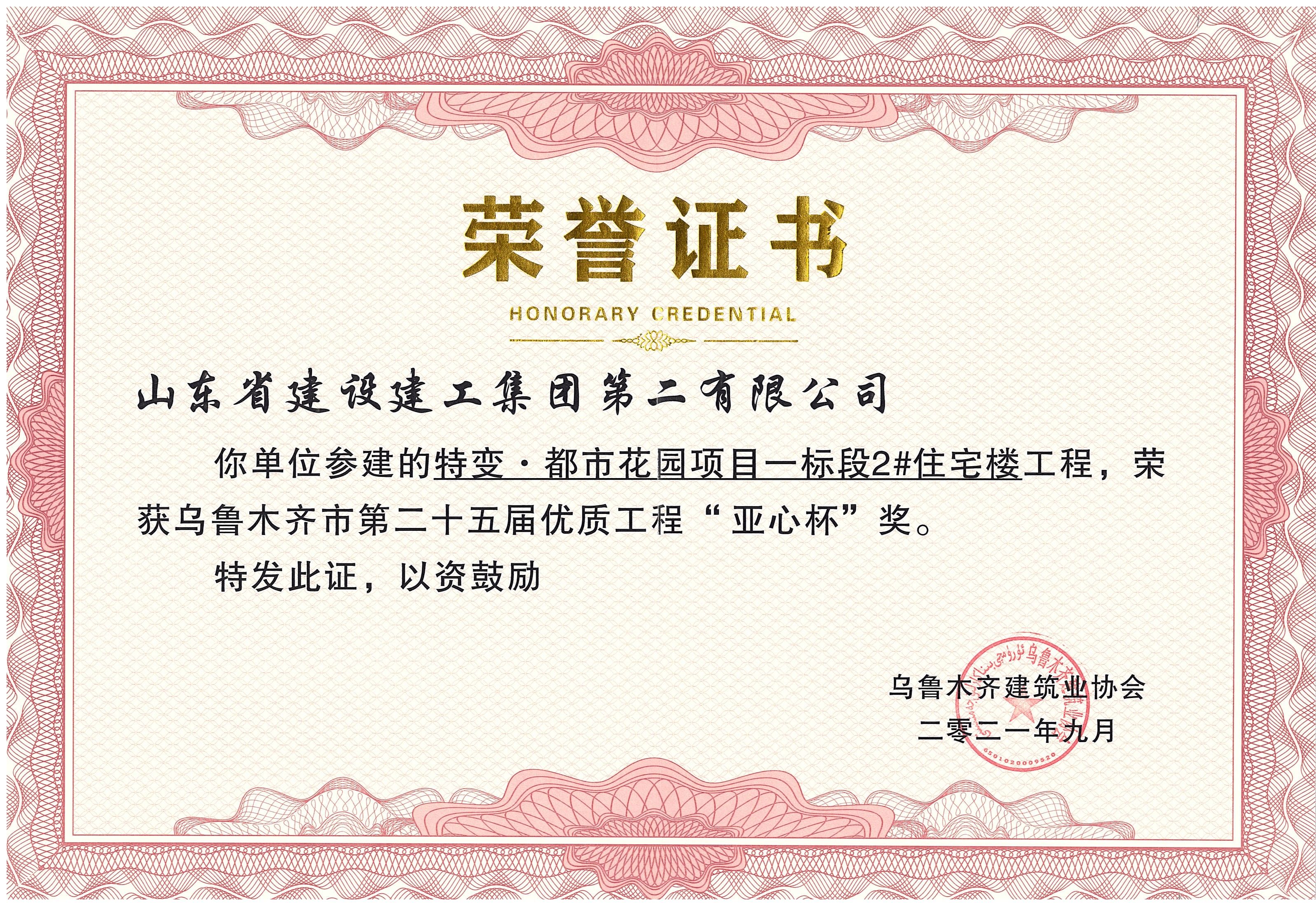 乌鲁木齐市第二十五届优质工程“亚心杯”