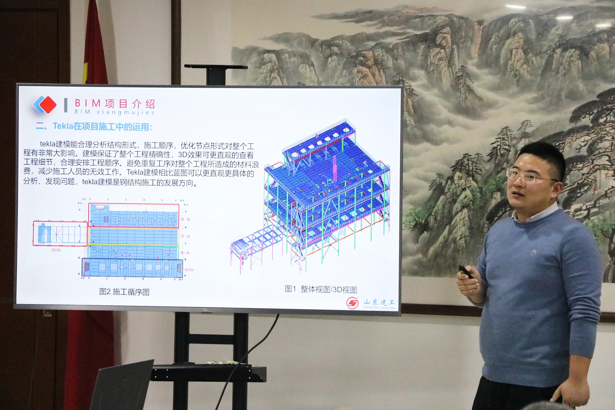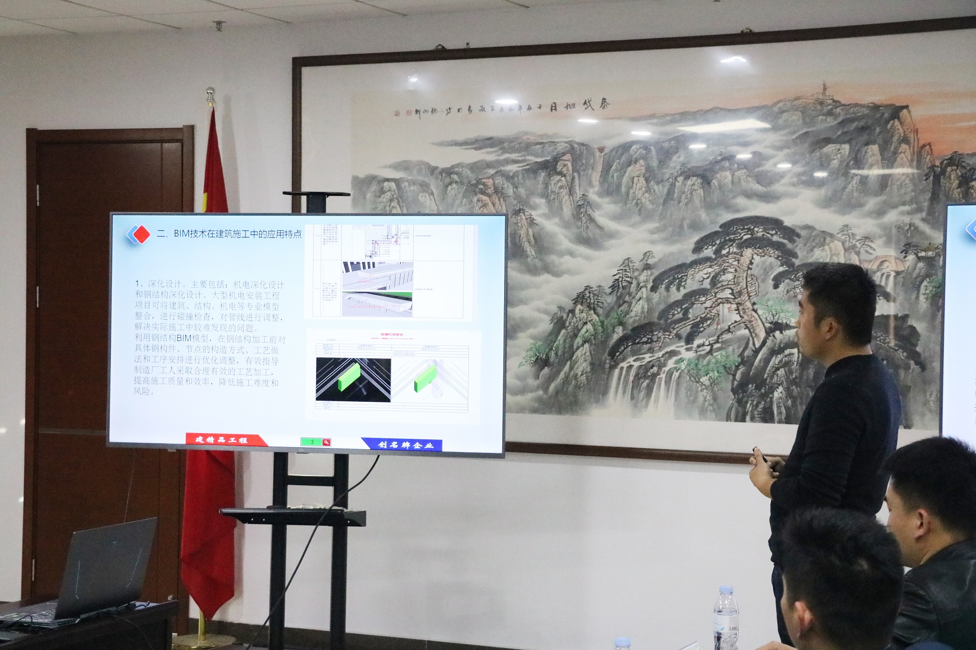 下午,二公司总工程师张虎主持会议,介绍了“BIM技术助力项目管理”主题活动周组织、安排及实施情况。随后集团技术中心王耀、李爽、李家乐,二分公司郭士海、徐韬杰,一直属公司项目王志川、单桂伟,七分公司王克,钢结构公司时晓阳,三分公司朱长亮共10位相关子分司技术人员分别从BIM应用发展情况、BIM技术解读、BIM技术应用与管理、BIM创奖等方面进行了主题课件交流汇报,介绍了BIM技术在施工中的应用及亮点,给广大BIM技术人员提供了借鉴学习的宝贵经验。最后,集团技术中心第一副主任苏世凯对本次会议进行了点评,并对BIM技术的应用提出相应要求,二分公司总工程师张虎对BIM技术的应用情况及落地情况进行总结。