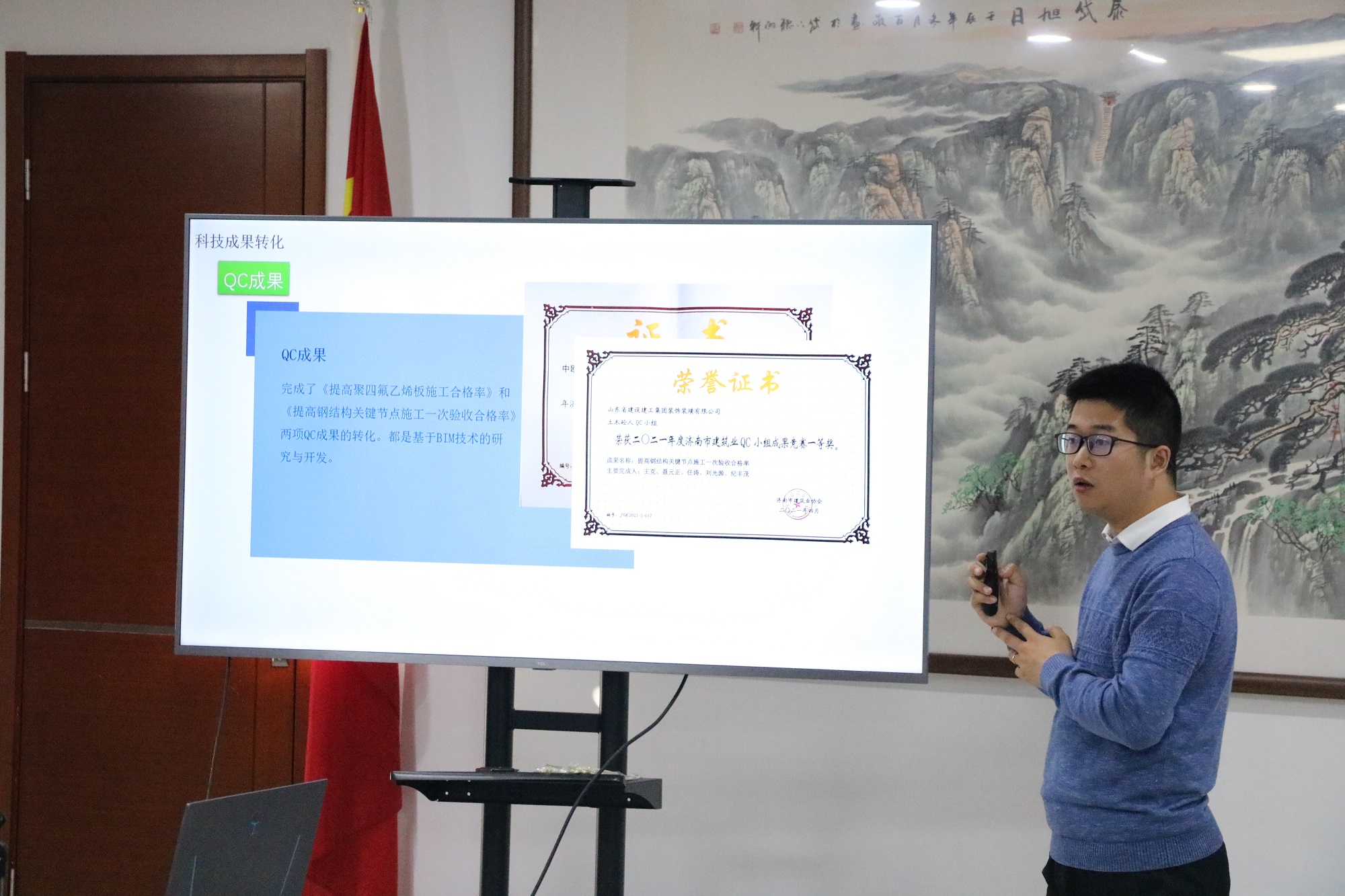 11月23日集团科技创新月第三个主题活动周“BIM技术助力项目管理”及集团2021年度BIM技术应用汇报评比成果发布预演和交流在二分公司会议室举行。