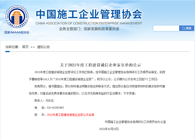 为规范企业负责人从业行为,提升企业家自律水平,促进工程建设行业高质量发展,中国施工企业管理协会开展了一年一度的工程建设诚信企业家评价工作。山东省建设建工(集团)副总经理,山东省建设建工集团第二有限公司董事长刘刚同志荣获“2021年度工程建设诚信企业家”称号。