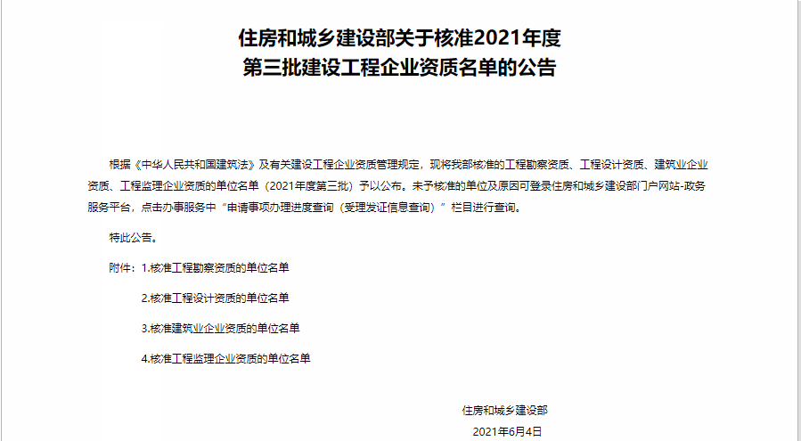 2021年6月7日,国家住房和城乡建设部网站发布了关于核准2021年度第三批建设工程企业资质名单的公告。山东省建设建工集团第二有限公司顺利升级建筑工程施工总承包壹级资质。