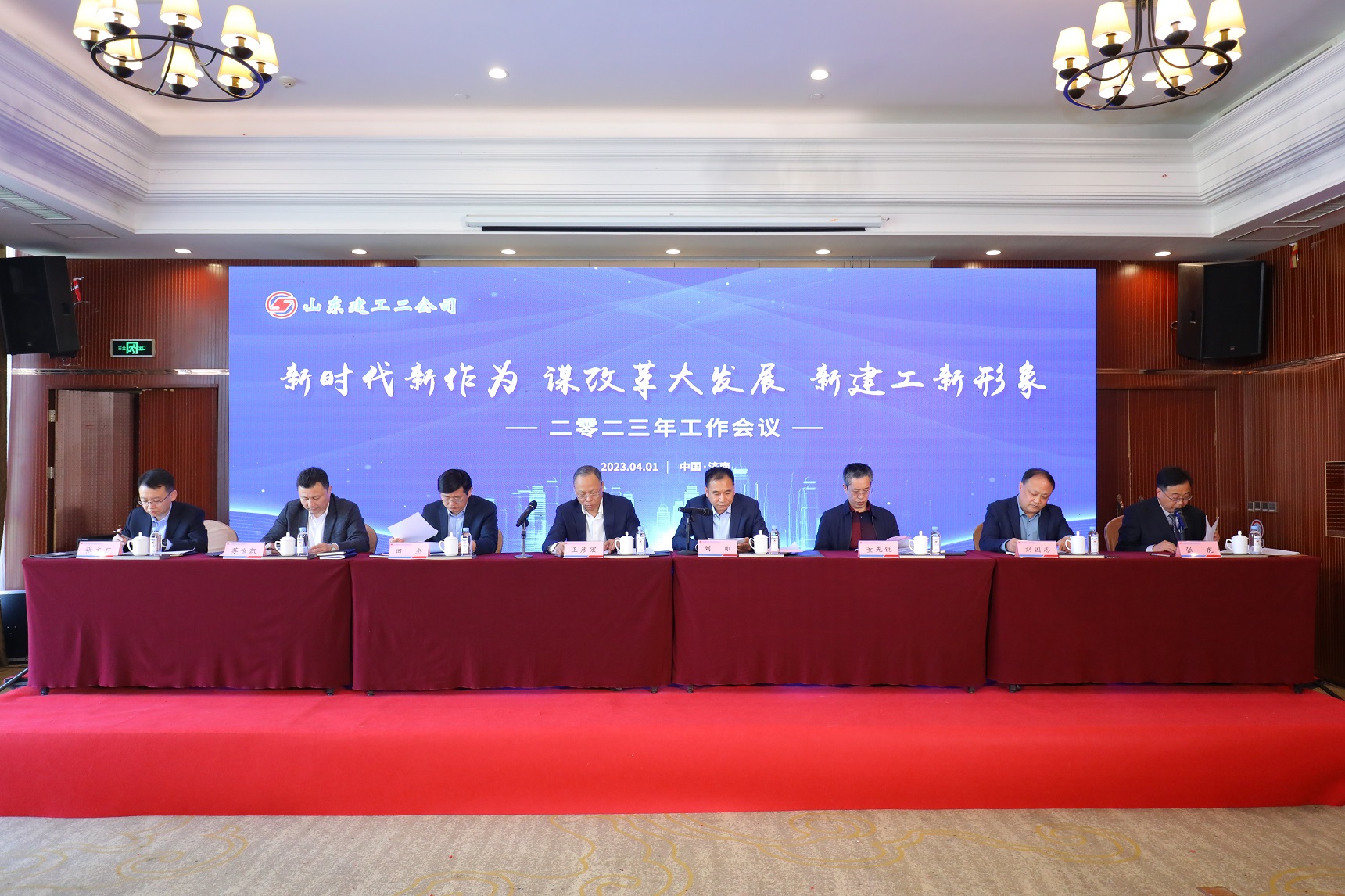 4月1日上午,二公司在山东骏腾酒店隆重召开2023年工作会议。集团党委书记、董事长、总经理王彦宏,集团监事会主席、安装分公司总经理、二公司监事长田杰,集团副总经理、总工程师董先锐,集团副总经理、安全总监苏世凯,集团总经理助理、财务部总经理刘国志,办公室主任张文广以及二公司领导班子、部室负责人、项目经理和受表彰的先进个人130余人参加会议。