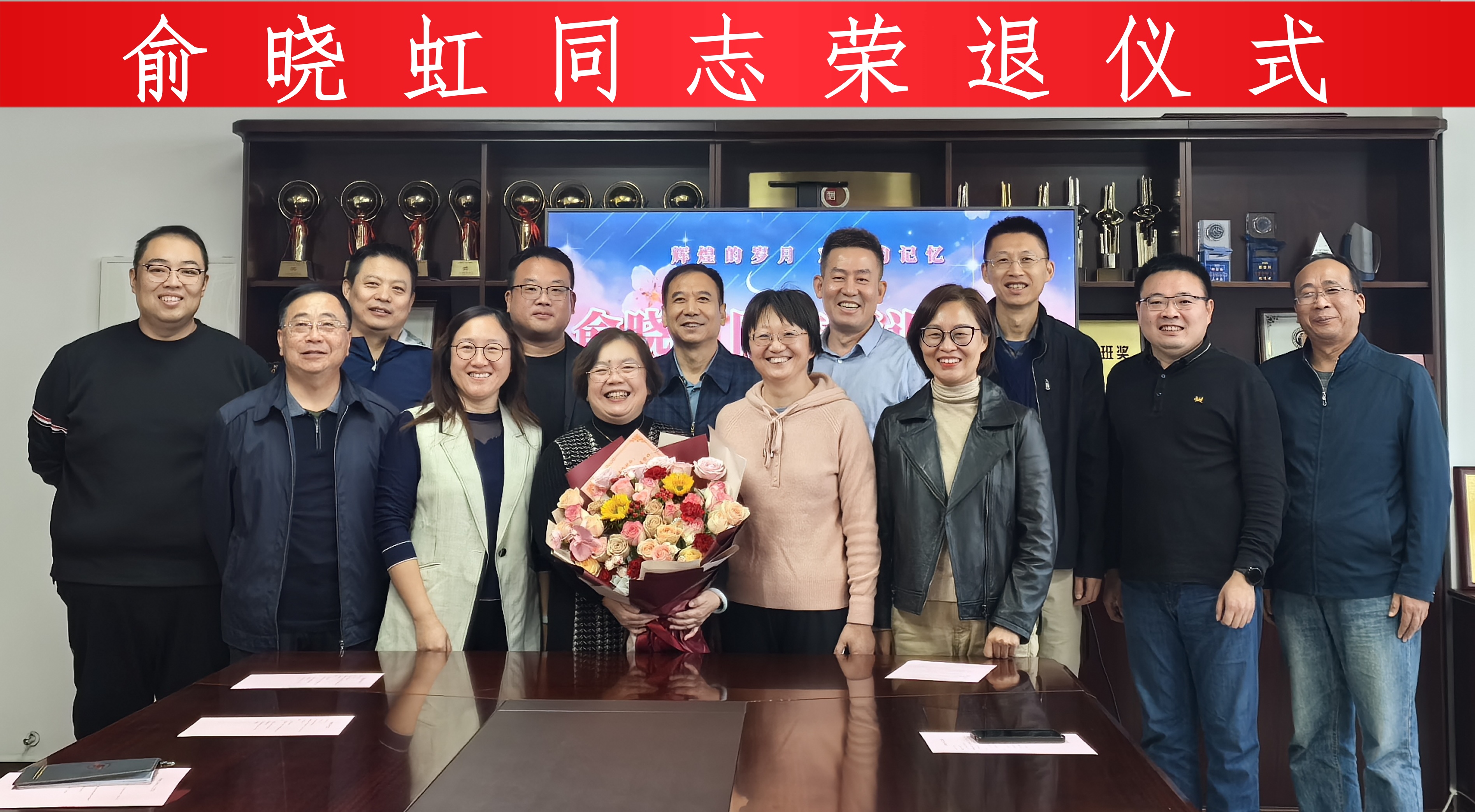 仪式最后,全场响起了热烈的掌声,为俞老师送上了最真挚的祝福。大家一起合影留念,共同记录这一难忘的时刻。