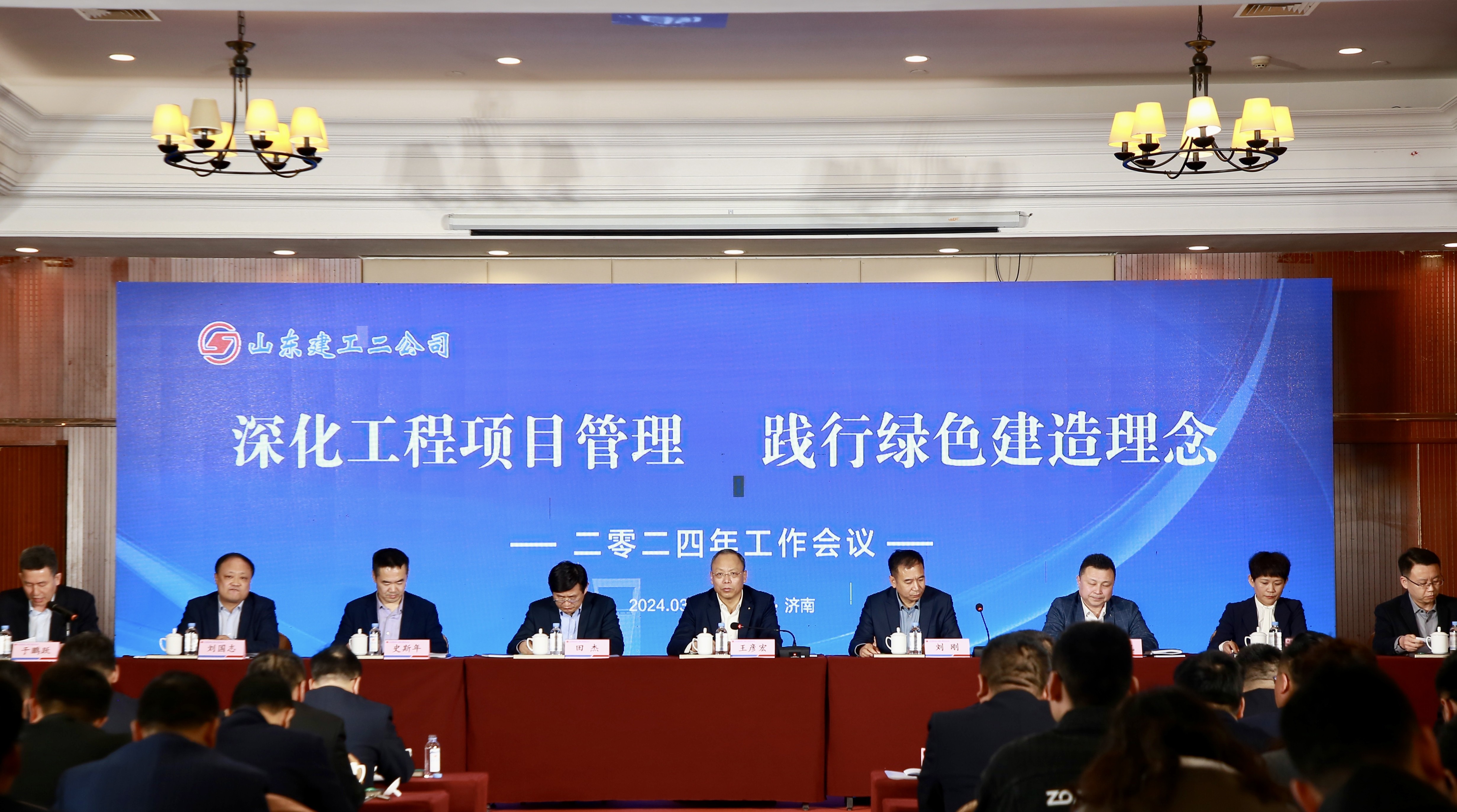 3月28日上午,二公司召开了以“深化工程项目管理 践行绿色建造理念”为主题的工作会议。集团党委书记、董事长王彦宏,集团监事会主席、科发建设工程有限公司董事长、安装分公司总经理、二公司监事长田杰,集团副总经理、安全总监苏世凯,集团总经理助理、战略部总经理史斯年,集团总经理助理、审计部总经理孙建飞,集团总经理助理、财务部总经理刘国志,集团办公室主任张文广以及二公司领导班子成员、部室负责人、项目经理及受表彰的先进等约130余人参加会议,会议由二分公司常务副总经理于鹏跃主持。